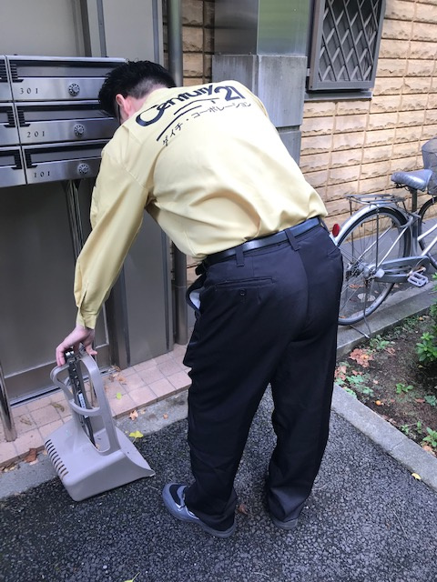共用電気が切れていないか、修理箇所はないか、お住まいの方がきちんとルールを守ってくれているか…などを点検しつつお掃除して回ります。